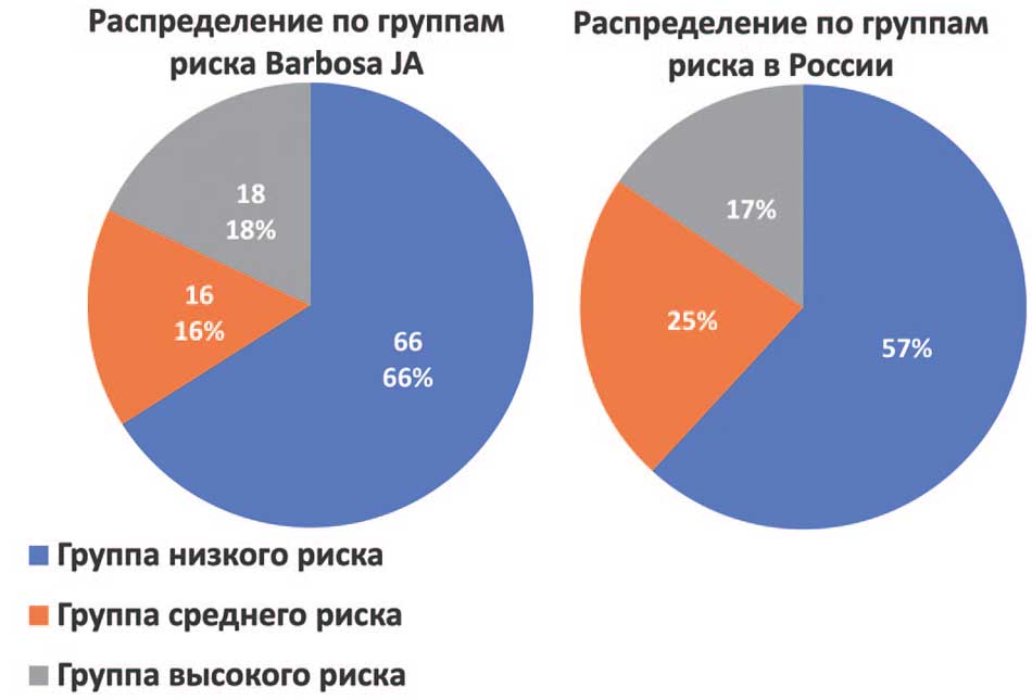 ![Распределение больных с подозрением на ПЯ по группам шкалы TWIST по данным J.A. Barbosa [6] и нашим данным](https://ecuro.ru/sites/default/files/issue/1-2025/ecu1_2025_15-005.jpg)